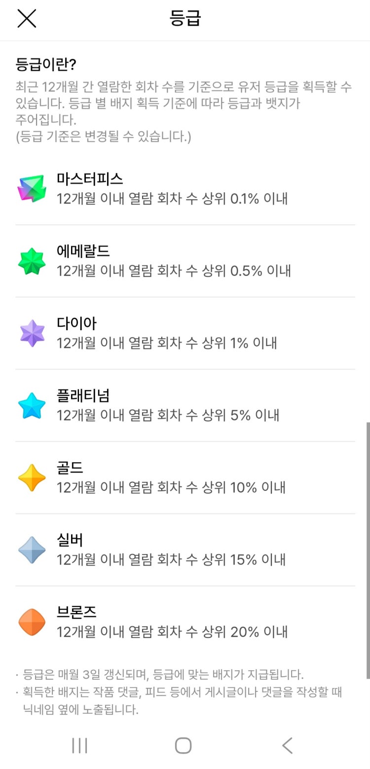 독자들 댓글 보니까 프로필에 아런 별들이 다양하게 있거나 없는 사람도 있던데 이게 뭔가요?